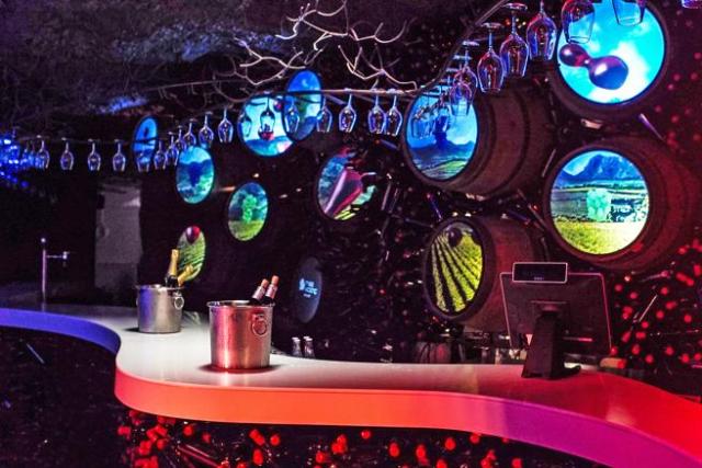 També hi ha una sala rodona i fosca on es serveix un sopar mentre ets al centre d’una projecció 3D i que ocupa totes les parets del lloc i de la mateixa taula, espai també de projecció, la qual puja i baixa segons toqui un o altre plat. S’hi explica una Odissea particular, la ordida per Franc Aleu i els seus somnis mediterranis. Aquesta sala encara està per estrenar.