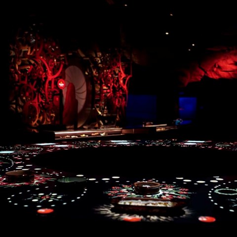 Hi ha un itinerari, un camí i una història, que deixem verge pel visitant, però sí podem indicar que l’entrada ens trasllada als imaginaris sempre enyorats dels autòmats del Tibidabo o de les velles atraccions Apolo, amb uns diorames animats per mecanismes senzills i alhora pintats per les imatges del més sofisticat màping, que has d’accionar introduint una moneda, ‘like in olden time’. Hi ha elements de la cultura popular, retalls amb el forat on posar el cap i fer-se la foto, capgrossos o caparrots, finestres d’imatges animades, vaixells que pengen del sostre, sirenes, quadres que es belluguen quan hi acostes la mà, …