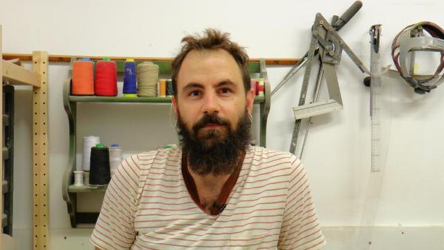 El color violeta del cos, -la pelfa tenyida- l’aconsegueixen amb un compost integrat per tint per a roba de color morat, aigua i vinagre.
