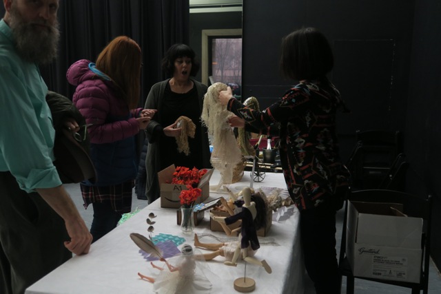 Cada director va explicar de manera col·loquial i molt personal, com encaraven el seu treball amb els objectes, els titelles i els textos, els uns d’una manera simultània, els altres partint primer del text per abordar després la plàstica de l’espectacle.