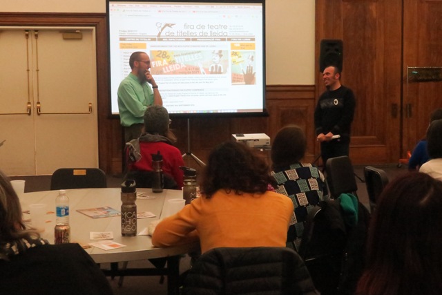 El dia 21, vam acudir de nou a la Library, on la UNIMA USA, amb els seus màxims representants, estaven citats per a una reunió de treball i gaudir del festival un cop s’acabés. Allà vam tenir l’ocasió, com a convidats especials del Festival, de presentar la Fira de Titelles de Lleida, els seus objectius, com funcionem i quines característiques té. Una oportunitat única per avançar en la nostra idea d’internacionalitzar al Fira, tot establint ponts entre els Estats Units i Europa.