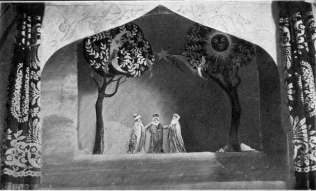 CASTELLET: “Petit escenari ambulant construït en forma de bastida o paravent, normalment de fusta pintada.Destinat a servir de marc al teatre de putxinel·lis.”