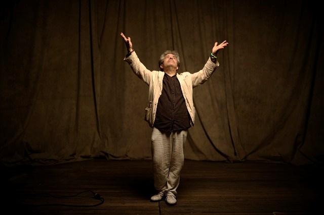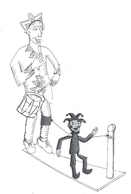 Manipulador i alhora músic. Titella que es belluga i balla al ritme que li toquen. Foto Paco Paricio
