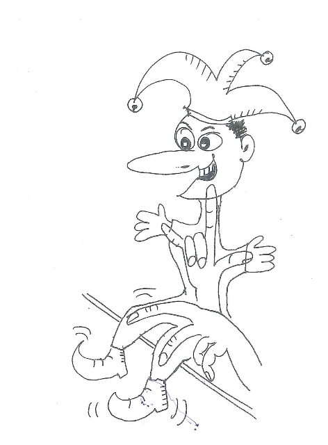 El binomi home-capa fa de castellet, i darrera la capa, s’oculta el manipulador. El “castellet” pot desplaçar-se de lloc sempre que vulgui, alhora que amb la ‘zampoña’ interpreta la música triada per a l’espectacle. El mínim dispositiu escenogràfic fa bona aquella dita tan entenimentada i útil quan s’aplica al món de l’art: “menos es más”. Foto dibuix de José Ribelles
