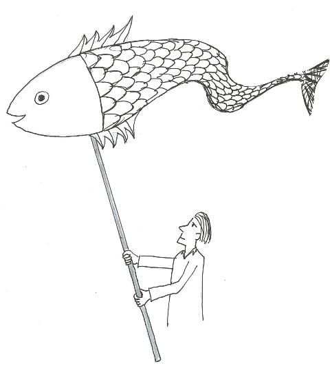Un peix “fora de l’aigua” neda, tot bellugant el timó de la cua, gràcies a la màgia del teatre. Foto Didascàlia