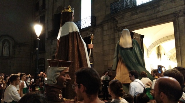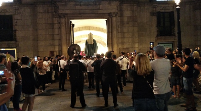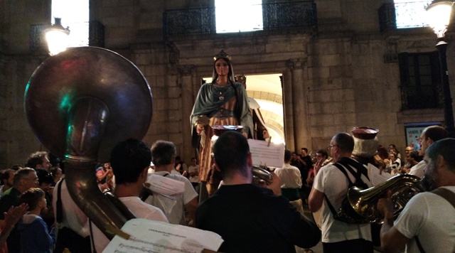 Les nobles portes de fusta d’aquest palau del segle XVIII, després de deixar passar a Jaume I i Violant d’Hongria, nom dels dos gegants –els més antics de Catalunya, tot i que les actuals figures són una reproducció basada en imatges de 1921–, es van tancar de nou un cop haver engolit els gegants i la música que els acompanyava.
