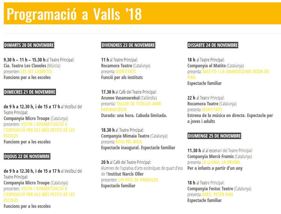 Arts Santa Mònica Associació Titellaire de Roquetes Barcelona Born Casa-Taller de Marionetas de Pepe Otal Catalunya Centre de Titelles de Lleida Cesc Martínez Cursos Damià Barbany Editorial Eudald Ferré Festival Internacional de Teatre de Teresetes fil Fira de Teatre de Titelles de Lleida Fira de Titelles de Lleida guant if barcelona Institut del Teatre Institut del Teatre de Barcelona Joan Baixas Jordi Bertran La Puntual La Revolta dels Titelles Lleida MAE Mallorca Néstor Navarro Objectes Ombres Palma Palma de Mallorca Poble Espanyol Putxinel·li Rocamora Teatre Sala Fènix teatre d'objectes Teatre d'Ombres Teia Moner Teresetes titelles Toni Rumbau Unima UNIMA Catalunya València