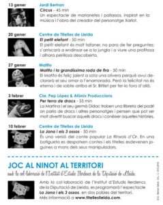 Arts Santa Mònica Associació Titellaire de Roquetes Barcelona Born Casa-Taller de Marionetas de Pepe Otal Catalunya Centre de Titelles de Lleida Cesc Martínez Cursos Damià Barbany Editorial Eudald Ferré Festival Internacional de Teatre de Teresetes fil Fira de Teatre de Titelles de Lleida Fira de Titelles de Lleida guant if barcelona Institut del Teatre Institut del Teatre de Barcelona Joan Baixas Jordi Bertran La Puntual La Revolta dels Titelles Lleida MAE Mallorca Néstor Navarro Objectes Ombres Palma Palma de Mallorca Poble Espanyol Putxinel·li Rocamora Teatre Sala Fènix teatre d'objectes Teatre d'Ombres Teia Moner Teresetes titelles Toni Rumbau Unima UNIMA Catalunya València