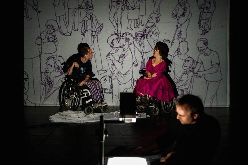 Alhora, la Fira posa sobre la taula la necessitat i l’obligació de programar espectacles amb mirada inclusiva com l’obra Superabile de Teatro la Ribalta-Kunst der Vielfalt. Una obra protagonitzada per quatre actors, dos d’ells amb cadira de rodes, que posen a escena la seva vida quotidiana, les mirades dels altres, la necessitat d’anar sempre acompanyats, la manca d’intimitat i la pèrdua d’autonomia. L’espectacle compta amb un dibuixant en directe que crea un món de figures i projectant-les sobre l’escena, i els actors queden immersos en un còmic de la vida.