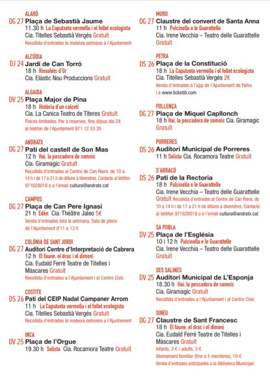 Arts Santa Mònica Associació Titellaire de Roquetes Barcelona Born Casa-Taller de Marionetas de Pepe Otal Catalunya Centre de Titelles de Lleida Cesc Martínez Cursos Damià Barbany Editorial Eudald Ferré Festival Internacional de Teatre de Teresetes fil Fira de Teatre de Titelles de Lleida Fira de Titelles de Lleida guant if barcelona Institut del Teatre Institut del Teatre de Barcelona Joan Baixas Jordi Bertran La Puntual La Revolta dels Titelles Lleida MAE Mallorca Néstor Navarro Objectes Ombres Palma Palma de Mallorca Poble Espanyol Putxinel·li Rocamora Teatre Sala Fènix teatre d'objectes Teatre d'Ombres Teia Moner Teresetes titelles Toni Rumbau Unima UNIMA Catalunya València
