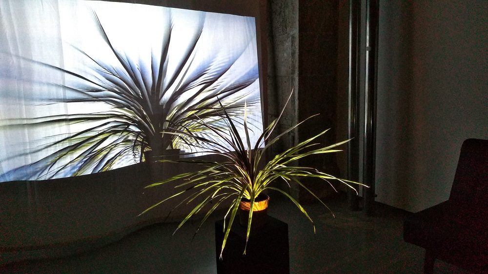 La segona instal·lació, visual en aquest cas, es va centrar també en una planta (una “Cordyline Australis”). L’experiment consistia en captar la imatge de la planta a través d’una càmera de vídeo y projectar-la en una pantalla de tela blanca penjada, amb una particularitat: la planta captada per la càmera estava entre el projector i la pantalla, de manera que aquesta generava l’ombra corresponent. Aquesta situació feia que la càmera fixa, en enfocar la planta, enfocava també els perfils de l’ombra produïts per la llum del projector en la pantalla, cosa que creava una espècie de ressonància visual del tot insòlita. Però hi havia encara una altra manipulació: un ventilador movia lleugerament la roba penjada que feia de pantalla, de manera que les ressonàncies esmentades per la càmera sumades a l’ombra de la planta, creaven uns efectes visuals insòlits i i del tot inusuals.