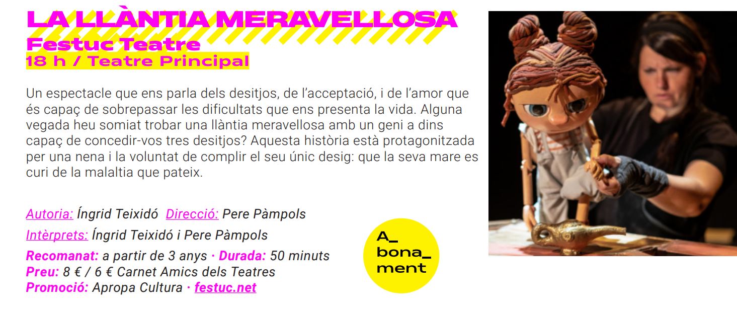 Arts Santa Mònica Associació Titellaire de Roquetes Barcelona Born Casa-Taller de Marionetas de Pepe Otal Catalunya Centre de Titelles de Lleida Cesc Martínez Cursos Damià Barbany Editorial Eudald Ferré Festival Internacional de Teatre de Teresetes fil Fira de Teatre de Titelles de Lleida Fira de Titelles de Lleida guant if barcelona Institut del Teatre Institut del Teatre de Barcelona Joan Baixas Jordi Bertran La Puntual La Revolta dels Titelles Lleida MAE Mallorca Néstor Navarro Objectes Ombres Palma Palma de Mallorca Poble Espanyol Putxinel·li Rocamora Teatre Sala Fènix teatre d'objectes Teatre d'Ombres Teia Moner Teresetes titelles Toni Rumbau Unima UNIMA Catalunya València