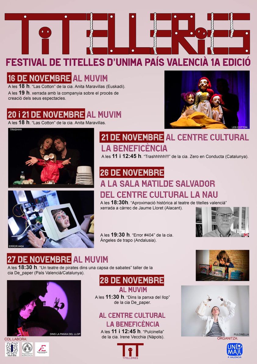 Arts Santa Mònica Associació Titellaire de Roquetes Barcelona Born Casa-Taller de Marionetas de Pepe Otal Catalunya Centre de Titelles de Lleida Cesc Martínez Cursos Damià Barbany Editorial Eudald Ferré Festival Internacional de Teatre de Teresetes fil Fira de Teatre de Titelles de Lleida Fira de Titelles de Lleida guant if barcelona Institut del Teatre Institut del Teatre de Barcelona Joan Baixas Jordi Bertran La Puntual La Revolta dels Titelles Lleida MAE Mallorca Néstor Navarro Objectes Ombres Palma Palma de Mallorca Poble Espanyol Putxinel·li Rocamora Teatre Sala Fènix teatre d'objectes Teatre d'Ombres Teia Moner Teresetes titelles Toni Rumbau Unima UNIMA Catalunya València