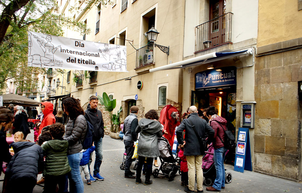 El 21 de març se celebra el Dia Mundial del Teatre de Titelles i, per aquesta ocasió, La Puntual, Recomana i UNIMA Catalunya van organitzat una trobada ahir diumenge, on titellaires procedents de diferents tècniques han ofert una festa a la plaça de l’Allada-Vermell (davant de La Puntual). I és que quan La Puntual, el teatre més petit de Barcelona i especialitzat en titelles, celebra una festa a la seva entrada, sembla que ens obri les portes del seu jardí, un lloc en què habiten personatges típics de l’univers dels titelles, i on s’escolten els riures de l’audiència gaudint de les diverses opcions que se li ofereixen.