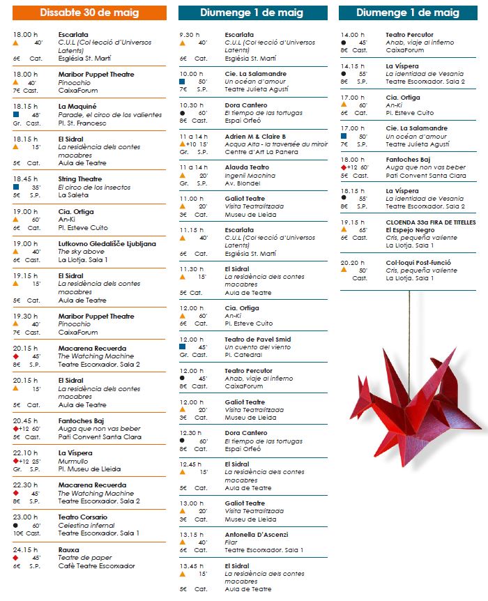 Arts Santa Mònica Associació Titellaire de Roquetes Barcelona Born Casa-Taller de Marionetas de Pepe Otal Catalunya Centre de Titelles de Lleida Cesc Martínez Cursos Damià Barbany Editorial Eudald Ferré Festival Internacional de Teatre de Teresetes fil Fira de Teatre de Titelles de Lleida Fira de Titelles de Lleida guant if barcelona Institut del Teatre Institut del Teatre de Barcelona Joan Baixas Jordi Bertran La Puntual La Revolta dels Titelles Lleida MAE Mallorca Néstor Navarro Objectes Ombres Palma Palma de Mallorca Poble Espanyol Putxinel·li Rocamora Teatre Sala Fènix teatre d'objectes Teatre d'Ombres Teia Moner Teresetes titelles Toni Rumbau Unima UNIMA Catalunya València