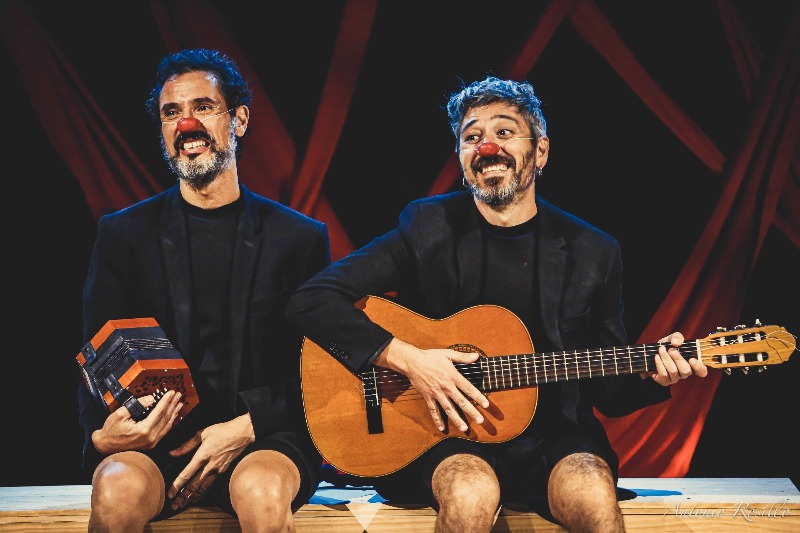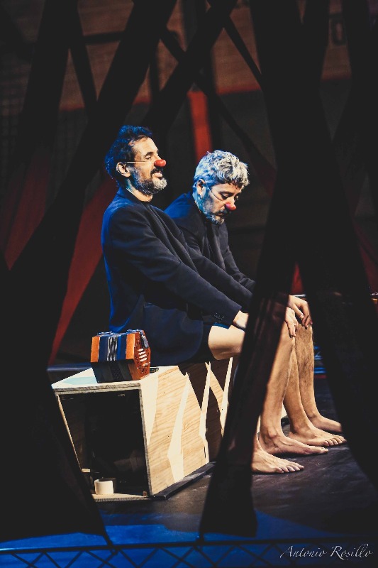 Álex Ramos i Santos Sánchez són els dos extraordinaris actors-clowns-titellaires, que demostren no sols un domini de les seves facultats histriòniques, sinó també aquest tipus d’intel·ligència que es reflecteix en el moviment, el gest i la simple presència. En efecte, els dos còmics omplen l’escena i ens fan viure un drama aparentment lleuger i divertit, el fet de que dues persones no es poden separar, un conflicte que al llarg de l’obra es va carregant de tons foscos fins esdevenir una patètica imatge de tantes relacions atrapades per la dualitat. Aquesta seria la seva lectura més sociològica. N’hi ha altres, per descomptat, més de caire psicològic i fins i tot filosòfic, i el mèrit és que tot això es diu i s’explica sense necessitat de creuar cap paraula.