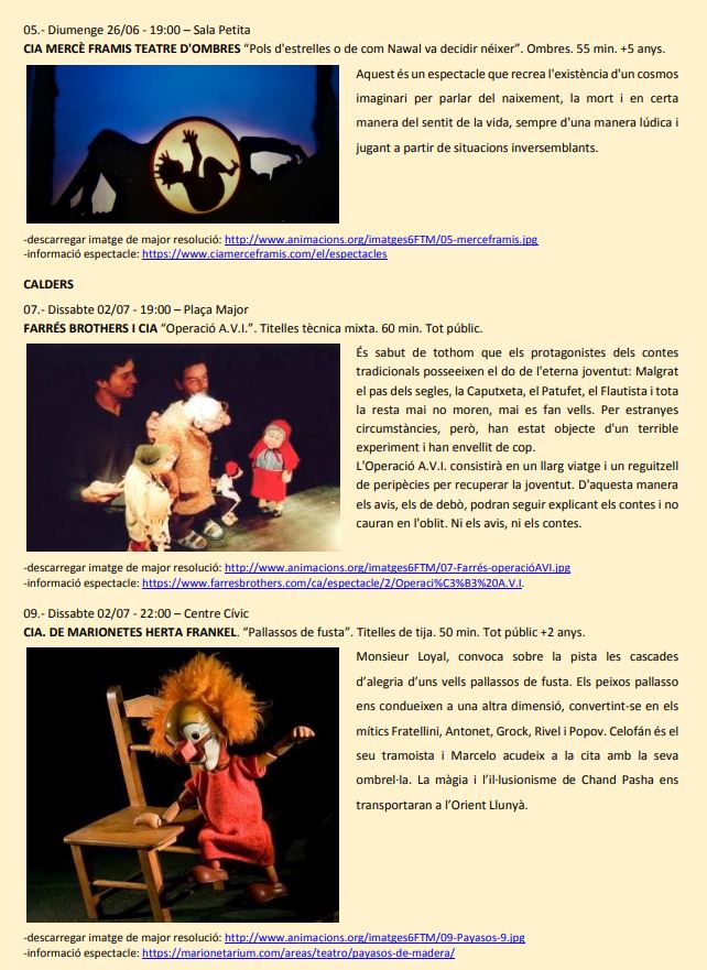 Arts Santa Mònica Associació Titellaire de Roquetes Barcelona Born Casa-Taller de Marionetas de Pepe Otal Catalunya Centre de Titelles de Lleida Cesc Martínez Cursos Damià Barbany Editorial Eudald Ferré Festival Internacional de Teatre de Teresetes fil Fira de Teatre de Titelles de Lleida Fira de Titelles de Lleida guant if barcelona Institut del Teatre Institut del Teatre de Barcelona Joan Baixas Jordi Bertran La Puntual La Revolta dels Titelles Lleida MAE Mallorca Néstor Navarro Objectes Ombres Palma Palma de Mallorca Poble Espanyol Putxinel·li Rocamora Teatre Sala Fènix teatre d'objectes Teatre d'Ombres Teia Moner Teresetes titelles Toni Rumbau Unima UNIMA Catalunya València