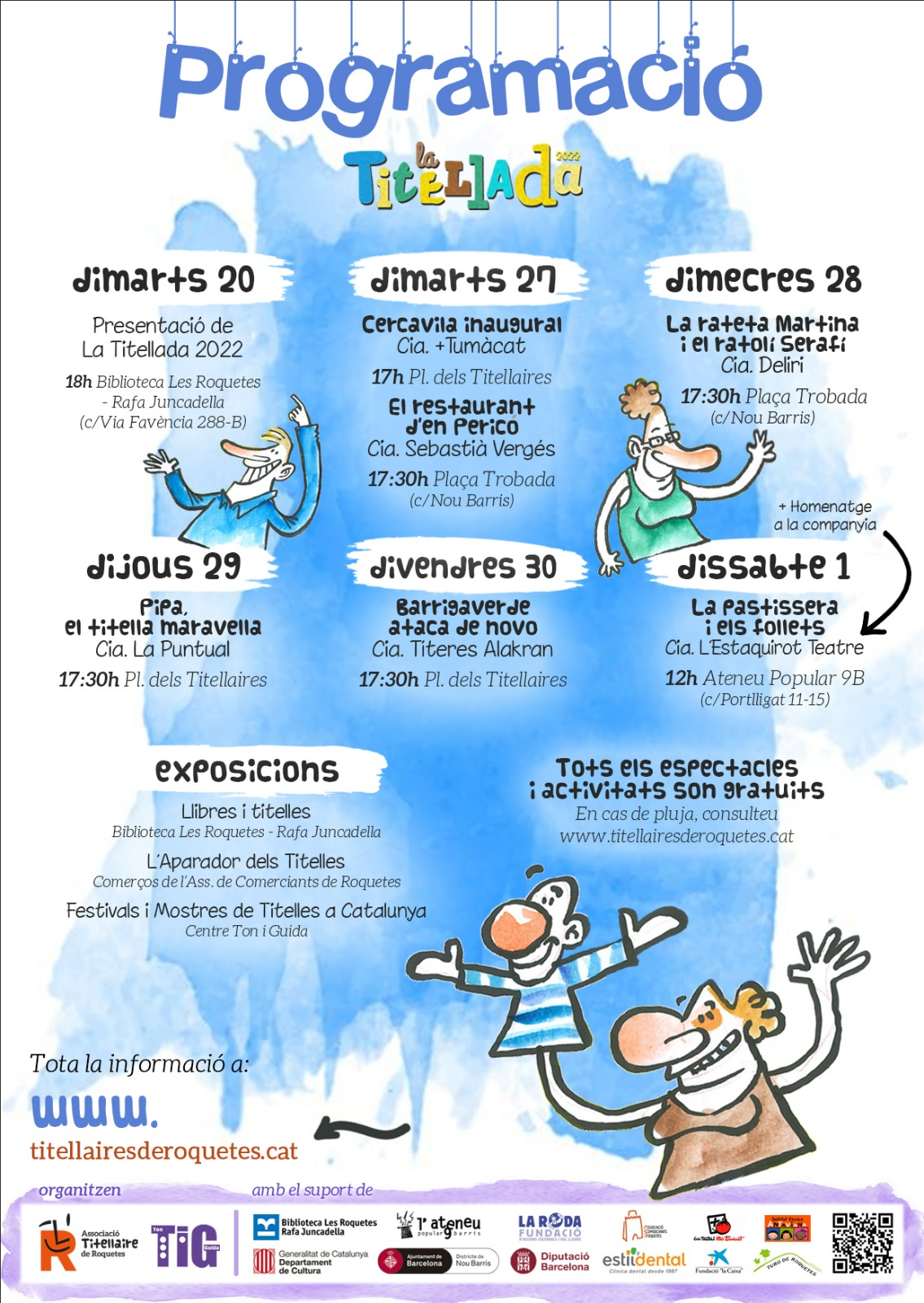 Del 27 de setembre a l’1 d’octubre té lloc el popular Festival de Titelles La Titellada, que organitza l’Associació de Titellaires de Roquetes. En aquesta ocasió, els seus responsables han programat sis diferents companyies de tres tècniques diferents: guant, fil i taula.