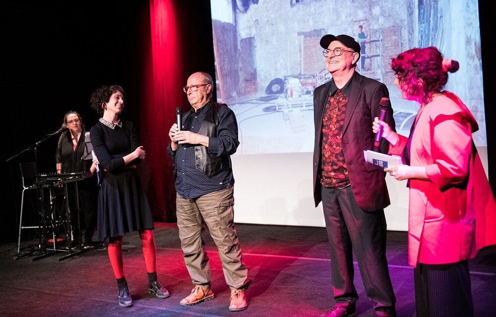 I sens dubte el moment més esperat i entranyable va ser quan els dos exdirectors, Víctor Suáñez i Júlio Álvarez, van ser convidats a pujar i a parlar. Atenció, ja no són els directors, però segueixen al peu del canó involucrats amb la marxa i el futur del projecte: el Víctor donant el seu cop de mà en les qüestions del finançament i de la maquinària logística, que tan bé coneix, i el Julio participant en diverses de les iniciatives dutes a terme per la Fàbrica de Creació, com és el Programa Comunitari amb Pi(è)ce, un projecte intergeneracional i intercultural amb gent gran i joves de diverses procedències, llengües i extractes socials dels barris del Raval i Poble Sec. O en el projecte dit La memòria del cos, amb tallers dirigits a la gent gran del barri del Raval.