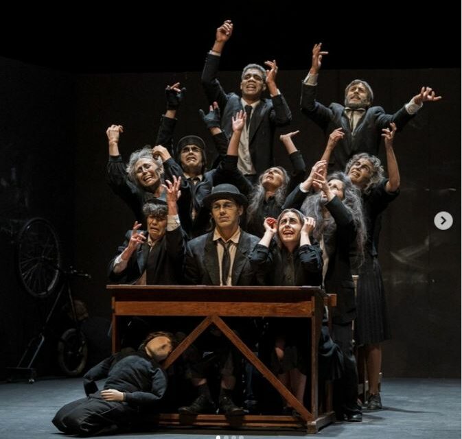 Val la pena llegir els apunts dramatúrgics redactats per Joan Cusó (clicar aquí) per entendre bé la contundent mestria de la seva posada en escena, que respon a un coneixement profund de l’obra i de l’autor. Com explica ell mateix en els apunts dramatúrgics: Kantor pren el paper de mestre de cerimònies i es converteix en una espècie de bruixot modern que intenta donar respostes a unes darreres preguntes: Que és la memòria? Que és la mort? Que té a dir l’art al respecte?