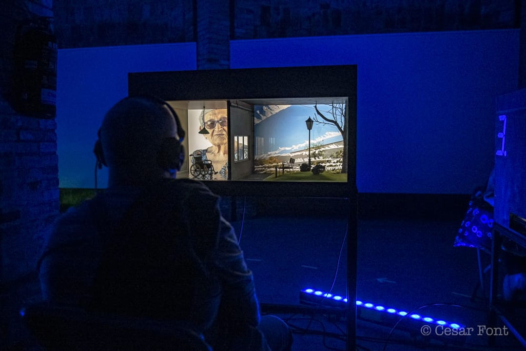 Aquest cronista ja coneixia l’obra (veure aquí) i va ser un plaer constatar de nou la riquesa dels matisos que ofereixen noves mirades de les sis caixes que composen la instal·lació. Caixes que obren a mons de soledat i de pensament, a imatges amb les seves paraules i sonoritats pròpies, les quals ens permeten establir la distància indispensable per reflexionar sobre les situacions viscudes durant la pandèmia, però també sobre el futur cada vegada més complicat que ens espera. Distància que alhora és la que viuen les persones entre sí situades en cadascun dels seus habitacles i les seves circumstàncies, generalment fosques.