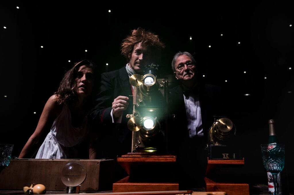 “Lucis et Umbrae”. D’esquerra a dreta, els “quatre” intèrprets de l’espectacle: Rosa Serra, Sergi Buka, Llanterna Màgica, i Jordi Sabatés. Foto: May Zircus