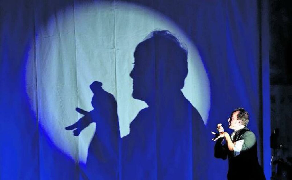 Companyia de teatre Els Comediants. Espectacle “Bocatto di Cardinale”. A la pantalla, l’ombra xinesa de les mans de Sergi Buka, adquireix tot el protagonisme expressionista que l’escena reclama. Foto: Arxiu Comediants.