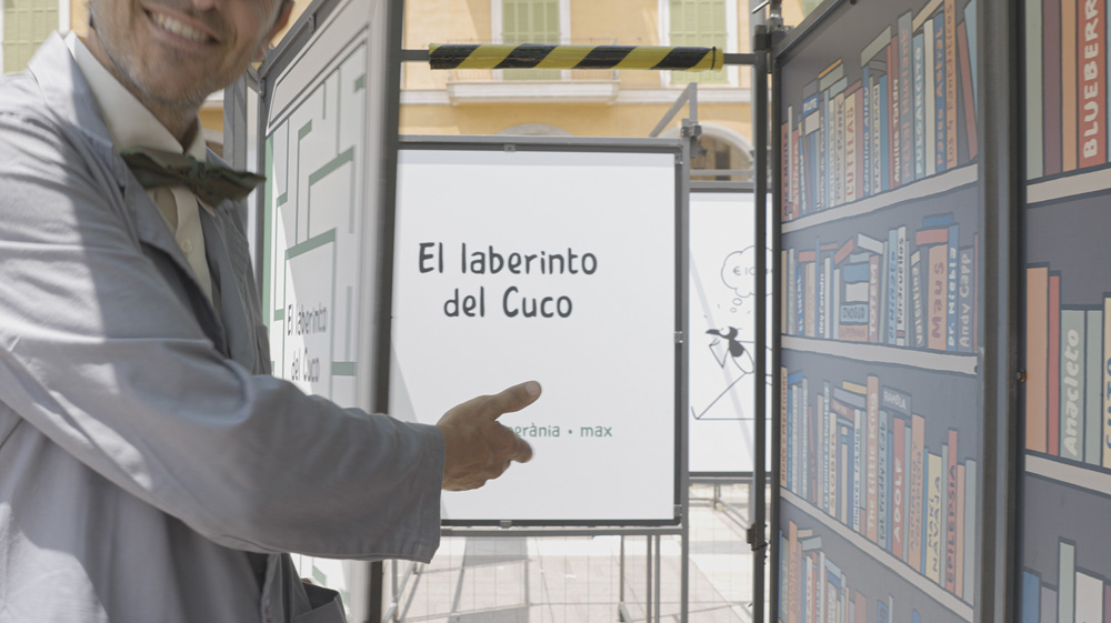Què és el Laberinto del Cuco? Segons ens diuen els seus autors: Un còmic de gran format dibuixat sobre les parets d’un laberint, on cada participant experimenta la seva versió del còmic, segons el camí que pren. O dit en altres paraules: una instal·lació participativa i un còmic al mateix temps. Se cerca el cucut que canta el pas de les hores, perquè la seva desaparició ha provocat un daltabaix temporal. Un còmic de gran format dibuixat sobre les parets d’un laberint, on cada participant experimenta la seva versió del còmic, segons el camí que pren.