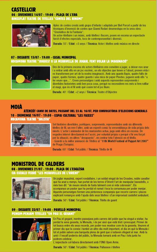 Arts Santa Mònica Associació Titellaire de Roquetes Barcelona Born Casa-Taller de Marionetas de Pepe Otal Catalunya Centre de Titelles de Lleida Cesc Martínez Cursos Damià Barbany Editorial Eudald Ferré Festival Internacional de Teatre de Teresetes fil Fira de Teatre de Titelles de Lleida Fira de Titelles de Lleida guant if barcelona Institut del Teatre Institut del Teatre de Barcelona Joan Baixas Jordi Bertran La Puntual La Revolta dels Titelles Lleida MAE Mallorca Néstor Navarro Objectes Ombres Palma Palma de Mallorca Poble Espanyol Putxinel·li Rocamora Teatre Sala Fènix teatre d'objectes Teatre d'Ombres Teia Moner Teresetes titelles Toni Rumbau Unima UNIMA Catalunya València