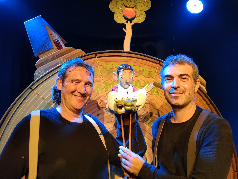 En Mingo i dos dragonets acabats de sortir de l’ou, amb els seus titellaires. Foto T.R.