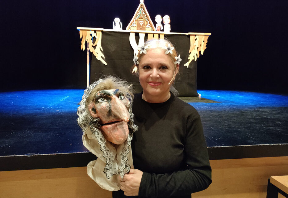 (Paca García, del Teatro Los Claveles, amb el titella de la Bruixa, a ‘La Caseta de Xocolata’. Foto T.R.)