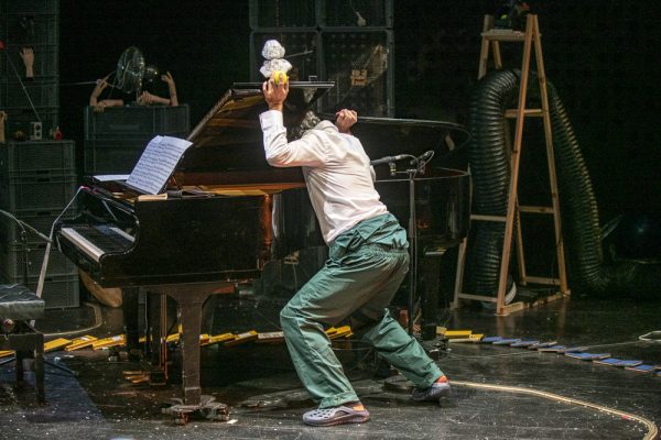 Bé, no hem parlat de l’actor, que fa una feina increïble, dotat d’unes qualitats extraordinàries, capaç de tocar el piano amb gran mestria, d’improvisar notes i inventar acompanyaments quan els necessita, però que a la vegada sap estar en una mena de curiós registre que és de clown malgré lui, ja que les gràcies no les fa perquè vol sinó perquè s’hi veu obligat pels entrebancs que director i escenògraf li han preparat, un joc de trampes que omplen tot l’escenari, convertit en una mena de laboratori metafísic i simbòlic, casi una mena de gabinet alquímic de l’autoreflexió vital, de lo que podríem dir ‘l’exercici pràctic de la vida’.
