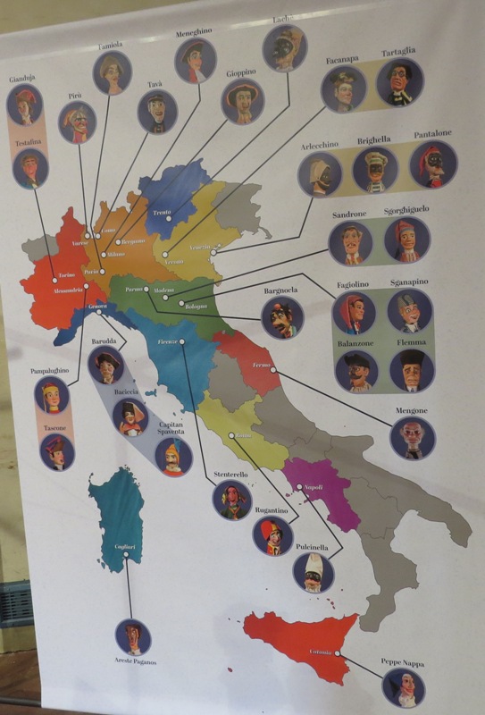 Mapa de les diferents màscares a Itàlia. Exposició Giù la Maschera, comissionada per Walter Broggini. Foto T.R.