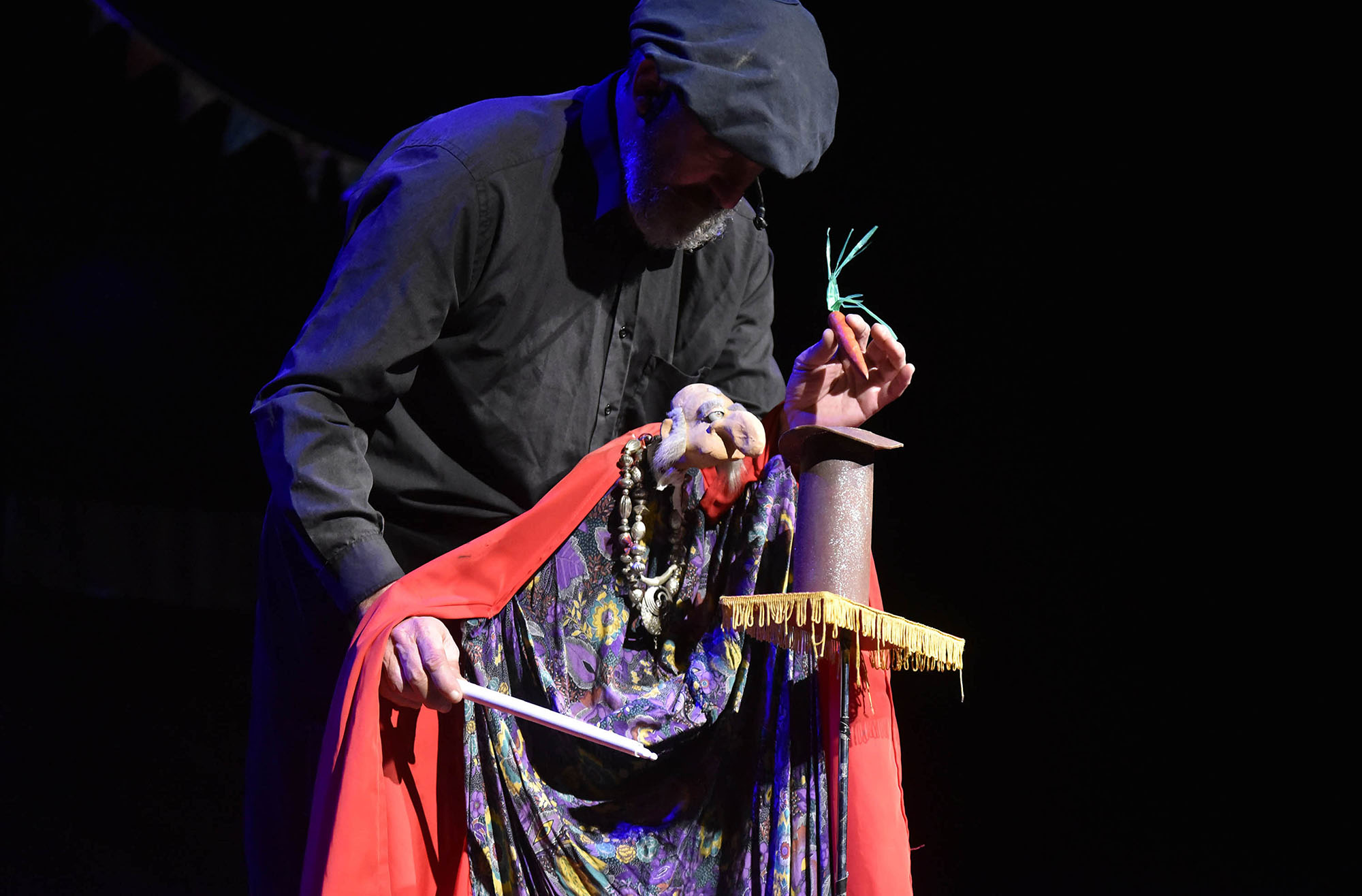 El saxofonista és un hilarant pallasso, extraordinari titella híbrid que s’estira seguint els aguts de l’instrument, que Nartxi mou amb segura mà pel darrera. O el cantautor rocker, que interpreta una meravellosa cançó en la que la marioneta declara la seva condició titellesca sense embuts, magníficament manipulada pel titellaire, en una fusió total amb el personatge. No podia faltar el mag, amb els seus elegants jocs de mans.