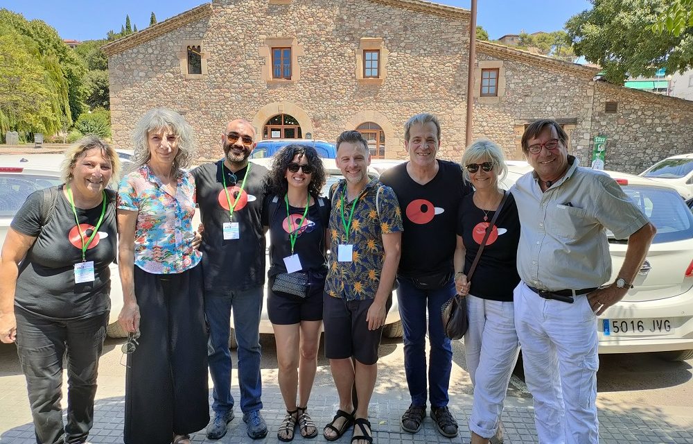 D’esquerra a dreta: Teia Moner, Valérie Gentile, Karim Dakroub, Fida Hteit, Ángel Pérez, Miquel Espìnosa, Véronique Bonotaux i Richard Bouchard, ponents a la VII Jornada de Titelles i Educació del 2023. Foto T.R.
