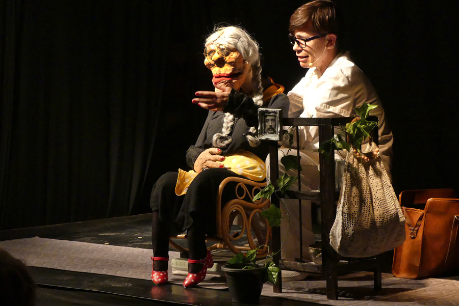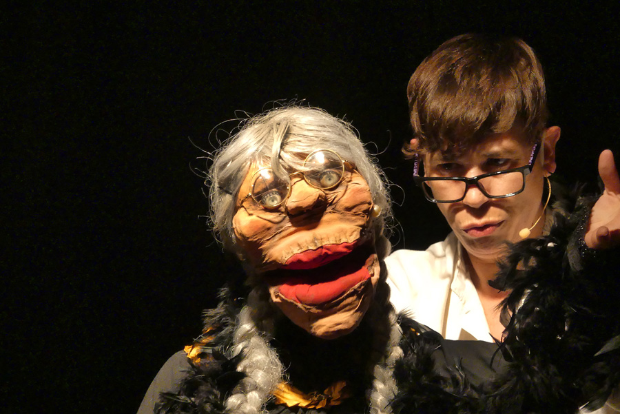I per acabar, va rematar la feina Laura Guiteras amb el que podríem afirmar com el gran espectable de la nit: un dels tres fragments de l’obra que està preparant amb la seva companyia María Palomo. Una feina que pocs titellaires s’atreveixen a realitzar, per les dificultats tècniques de comporta: la de donar vida a una marioneta de mides grans que d’alguna manera és el doble de l’actriu que el condueix, la qual li dona moviment i veu.