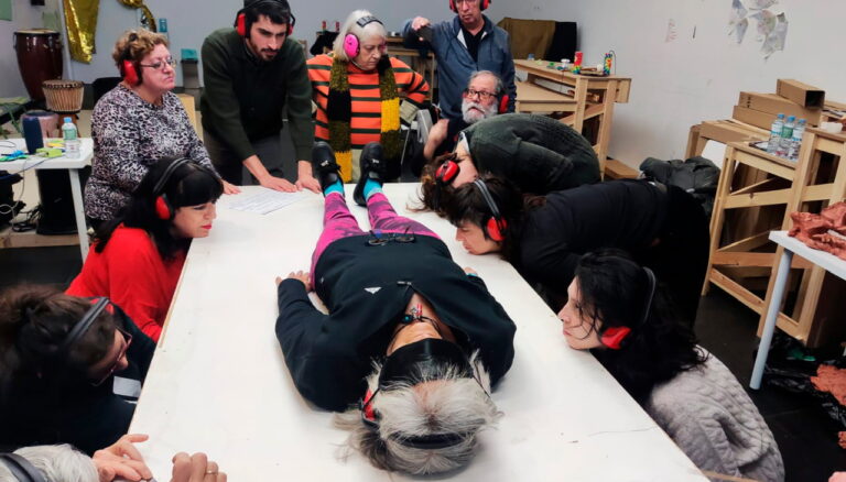 (Imatge: presentació del procés de creació de ‘El so dels Titelles’, d’Andrea Cruz i Toni Masegosa. Suralita, Manacor, 2024. Foto: Jordi Alomar)