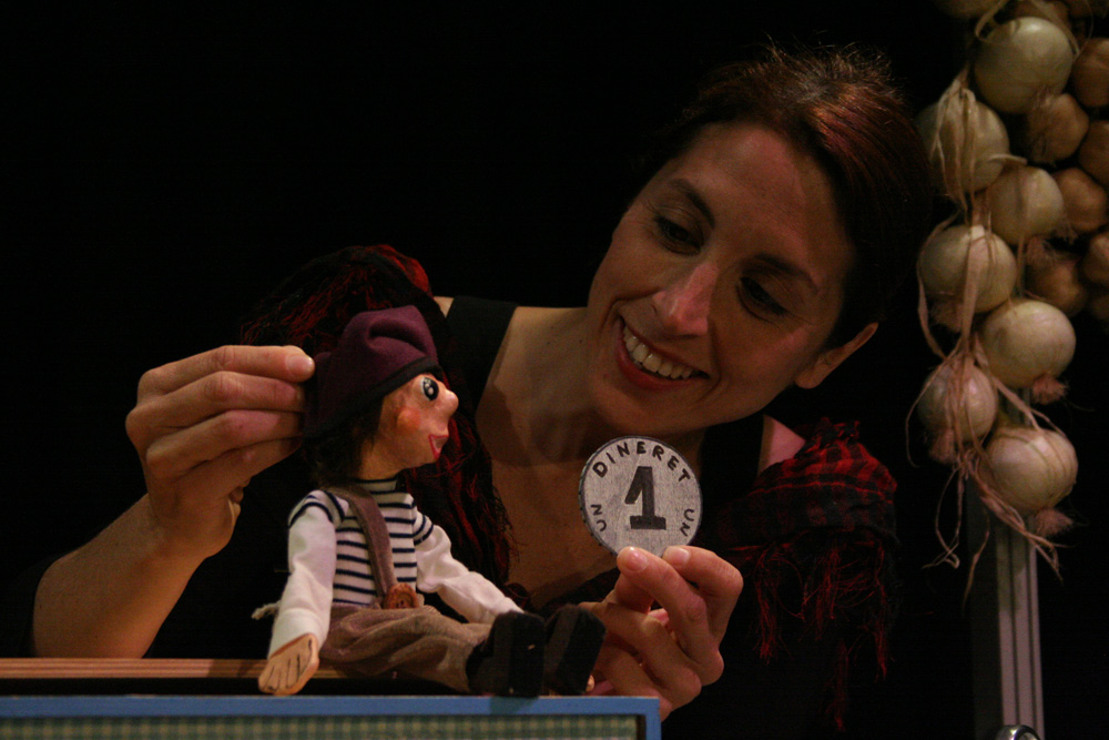 Dins de calaixos de velles tauletes, antics i reciclats, es trobaran les peces de fusta desmuntades i amb uns suports de ferro aniran muntant el titella amb uns cargols molt peculiars de fusta. Durant una estona, els més petits seran grans titellaires.