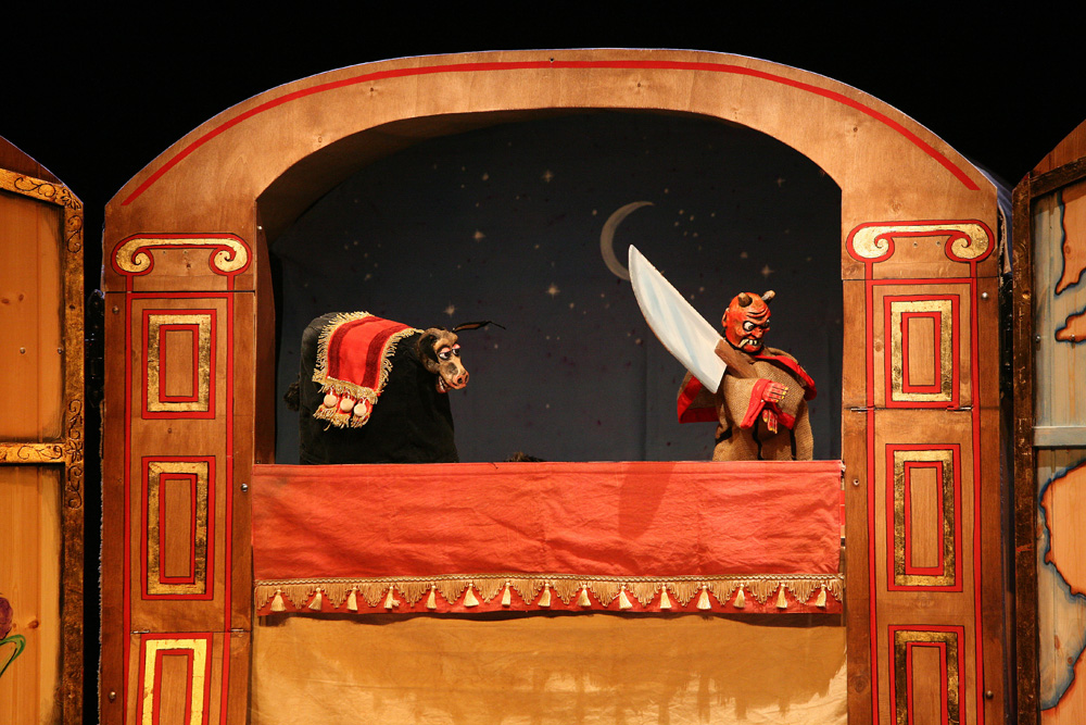 Castellet clàssic de titelles d’Eudald Ferré, amb una escena de dimonis. Foto companyia