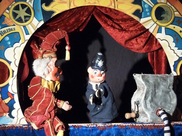 Punch, el Policía y la màquina de fer salsitxes. Professor Martin Bridle. Lisboa, Museu da Marioneta, juliol 2024. Foto T.R.