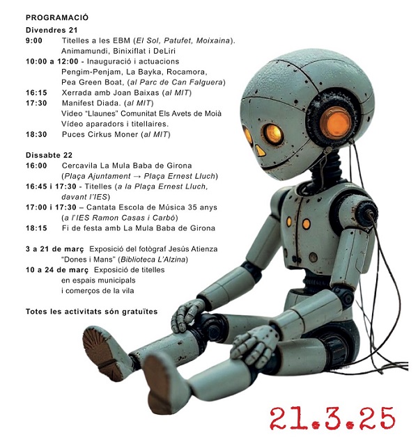 Arts Santa Mònica Associació Titellaire de Roquetes Barcelona Born Casa-Taller de Marionetas de Pepe Otal Catalunya Centre de Titelles de Lleida Cesc Martínez Cursos Damià Barbany Editorial Eudald Ferré Festival Internacional de Teatre de Teresetes fil Fira de Teatre de Titelles de Lleida Fira de Titelles de Lleida guant if barcelona Institut del Teatre Institut del Teatre de Barcelona Joan Baixas Jordi Bertran La Puntual La Revolta dels Titelles Lleida MAE Mallorca Néstor Navarro Objectes Ombres Palma Palma de Mallorca Poble Espanyol Putxinel·li Rocamora Teatre Sala Fènix teatre d'objectes Teatre d'Ombres Teia Moner Teresetes titelles Toni Rumbau Unima UNIMA Catalunya València
