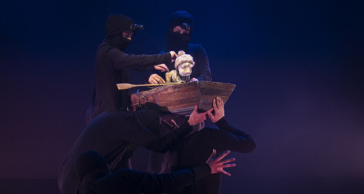 Dues són els grans troballes de la proposta: la cura dels elements que apareixen a l’escena, feta amb materials nobles i reciclats, sempre amb el referent marítim de les arts de la navegació -la mateixa barca és una meravella de construcció que val la pena veure de ben a prop per descobrir els seus detalls- i la manera tan original que han trobat de representar la força dels elements aquosos del mar, mitjançant els cossos tapats de negre dels cinc o sis manipuladors de la companyia, en una feina coreogràfica molt ben estudiada que demanava una bona preparació en teatre físic i dansa.