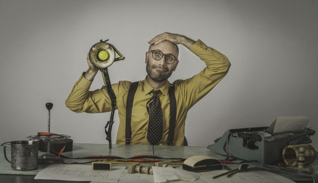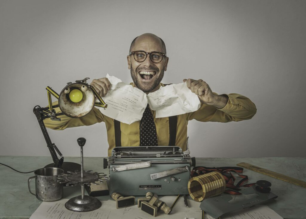 Una preciosa història d’auto alliberació feta amb l’ajuda de mil objectes relacionats amb la taula on treballar l’oficinista i els seus múltiples elements, o amb l’armari arxiver ple de calaixos, que es complementa amb eficaces projeccions d’imatges enregistrades.