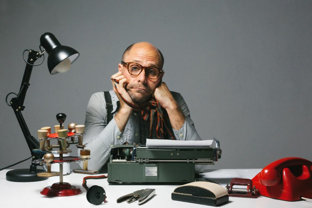 Amb uns inicis d’humor de clown clàssic, l’obra va eevolucionant ver un univers cada cop més poètic, en el que la imaginació del modest escrivà s’imposa sobre la realitat, una imaginació cada vegada més disparada i divertida, amb petits moments de records i de pors enquistades que apareixen quan la llibertat de fer i pensar lluita per esdevenir una realitat.