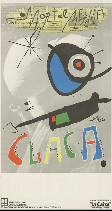 Cartell de l’espectacle “Mori el Merma”, creat pe la companyia La Claca i protagonitzat per titelles gegants pintats per Joan Miró. Direcció Joan Baixas. Foto: arxiu Putxinel·lis Claca