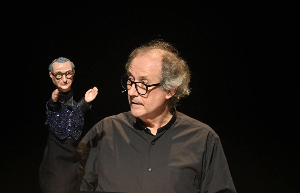 Toni Rumbau amb el seu doble. Els dos, que protagonitzaren la conferència-espectacle ‘El Titellaire, l’Ombra i el Doble’, també seran presents a ‘A Manos Libres’. Foto Iñigo Royo