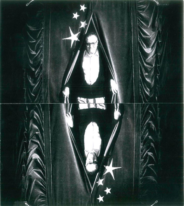 Una gran fotografia duplicada concebuda per a funcionar com espai escènic a “Brossa Brossassa Brossarteta Brossartina”. Concepte espacial Damià Barbany. Foto: Arxiu Fundació Brossa