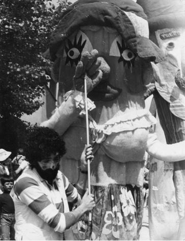 Josep Mª Carbonell amb un titella de carrer de la cia. Plantxet i Cia. Foto fons Rosa Maria Coca
