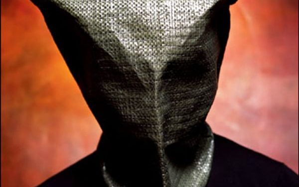 (Cara coberta per un sac de teixit sintètic. Imatge que pot ser considerada màscara, signe...